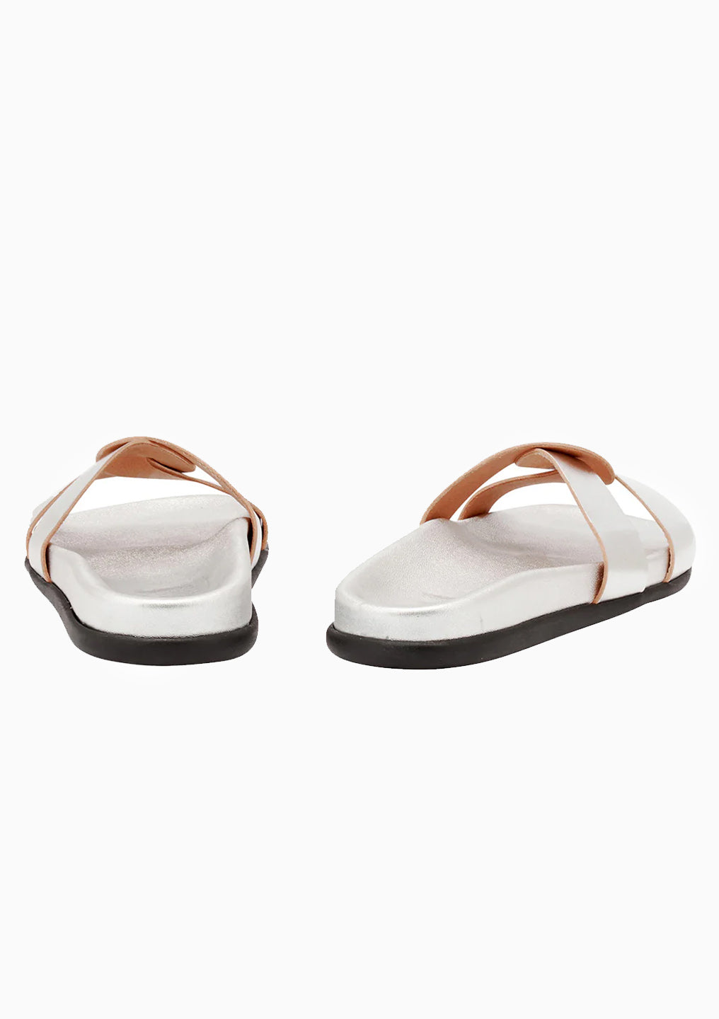 A slip-on sandal with a (literal) twist – two straps elegantly interlock across the foot giving an interesting detail. A long-time favourite, Desmos is now available in vachetta leather with a Footbed sole – the most comfortable and contoured of our soles, it’s finished in leather for aesthetics and comfort. AGS shoes are made from chemical-free natural tan leather and will comfortably wear in quickly, and age to perfection.